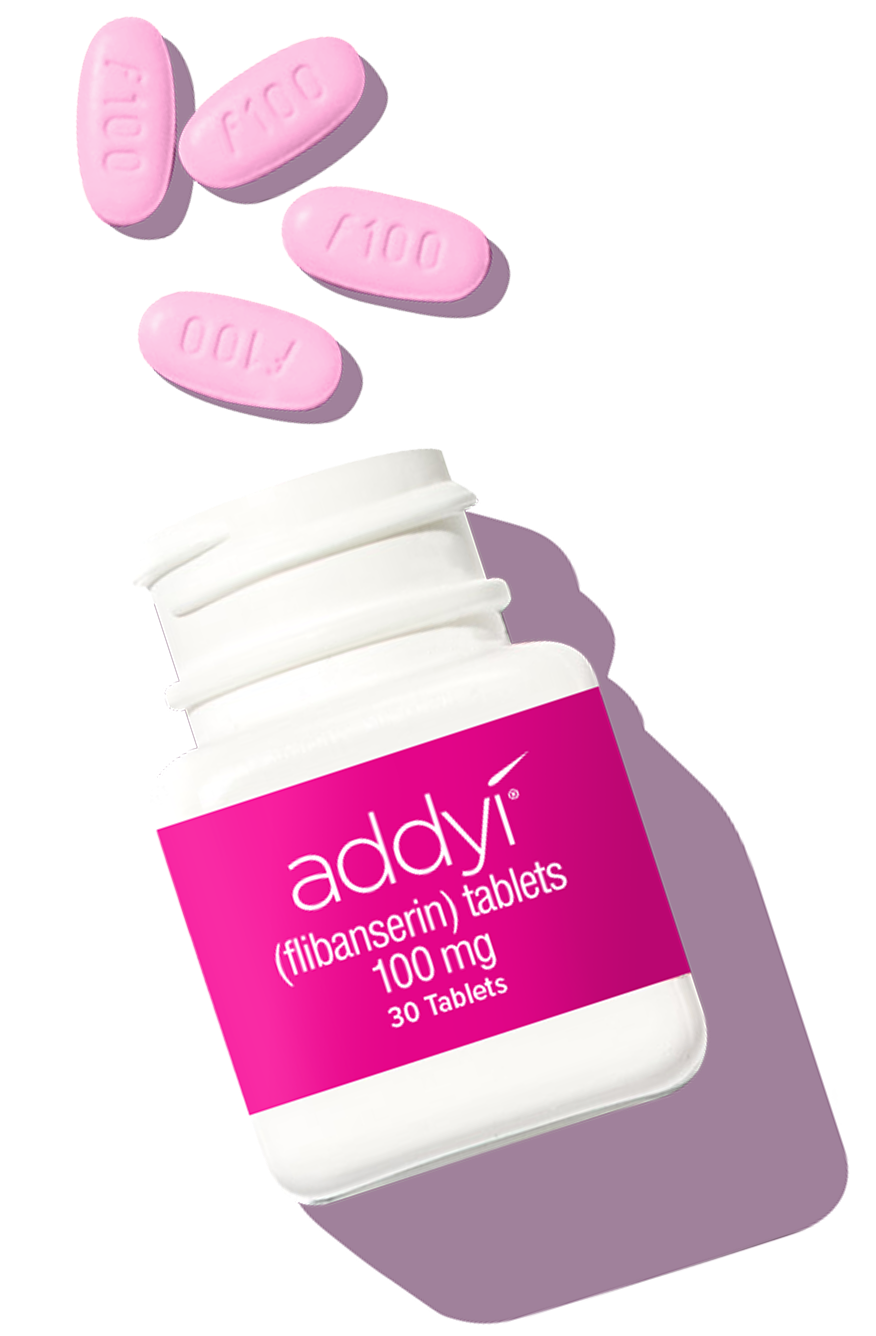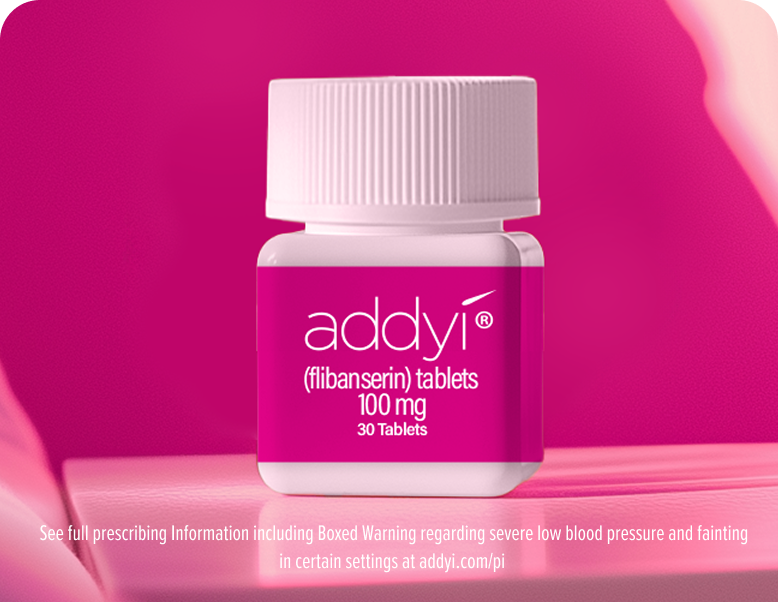 See full Prescribing Information, including Boxed Warning regarding severe low blood pressure and fainting in certain settings, and Medication Guide at addyi.com/pi.