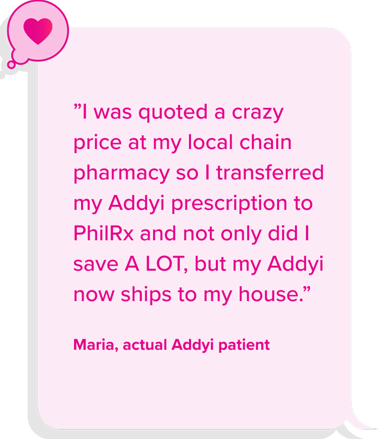 Click above to call PhilRx Pharmacy and transfer your AddyiRx